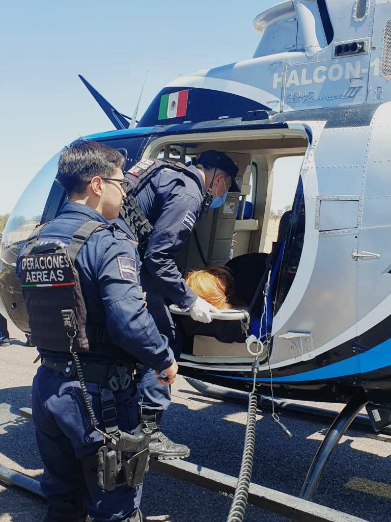 Por lo anterior, fue solicitado el apoyo del Helicóptero «Halcón 1» de la SSPMAGS al lugar de los hechos, para trasladar a la paciente de manera más rápida a recibir atención.