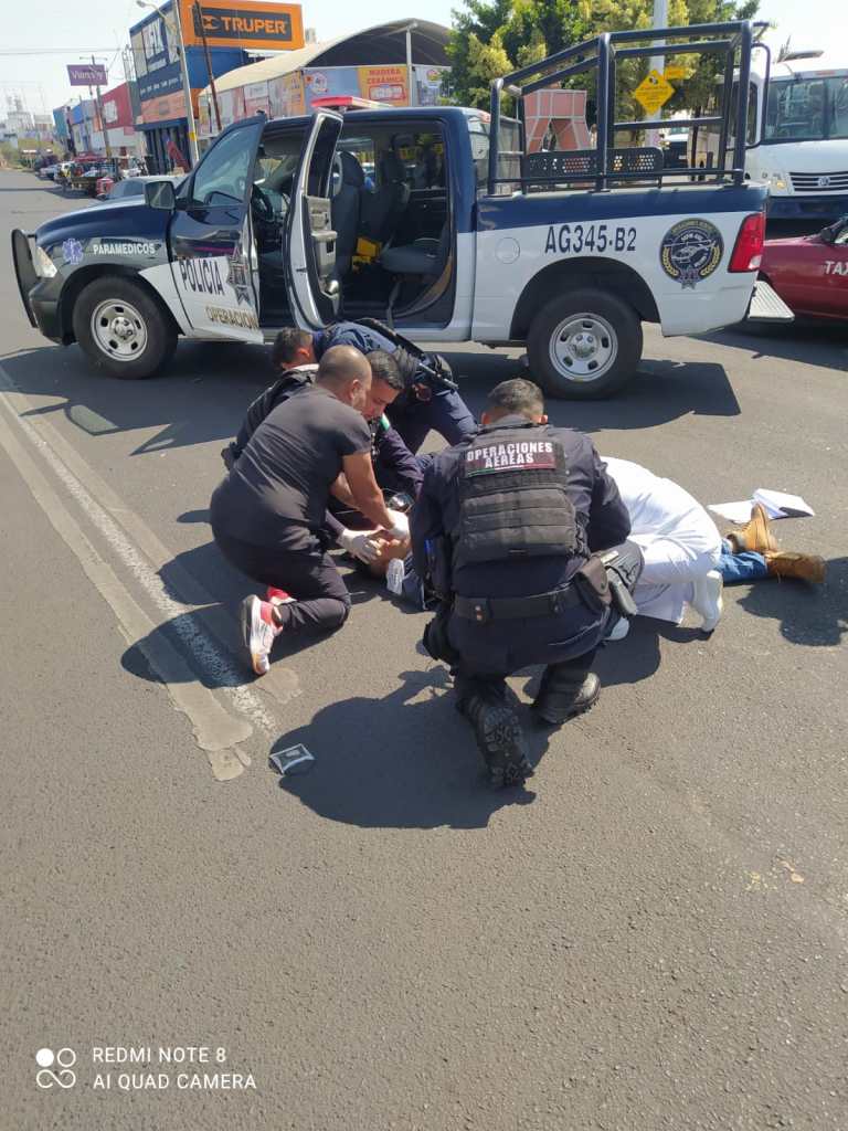 El reporte se recibió a las 10:05 horas de la mañana de este martes en el C4 Municipal de Aguascalientes, en el que se informaba que en el cruce de Avenida José María Chávez con avenida Paseo de la Cruz en la colonia Obraje se había registrado un aparatoso choque entre una moto y un taxi, por lo anterior en lugar de inmediato trasladaron oficiales de la Policía Vial y paramédicos del Grupo de Operaciones Aéreas del helicóptero “Halcón Uno”.