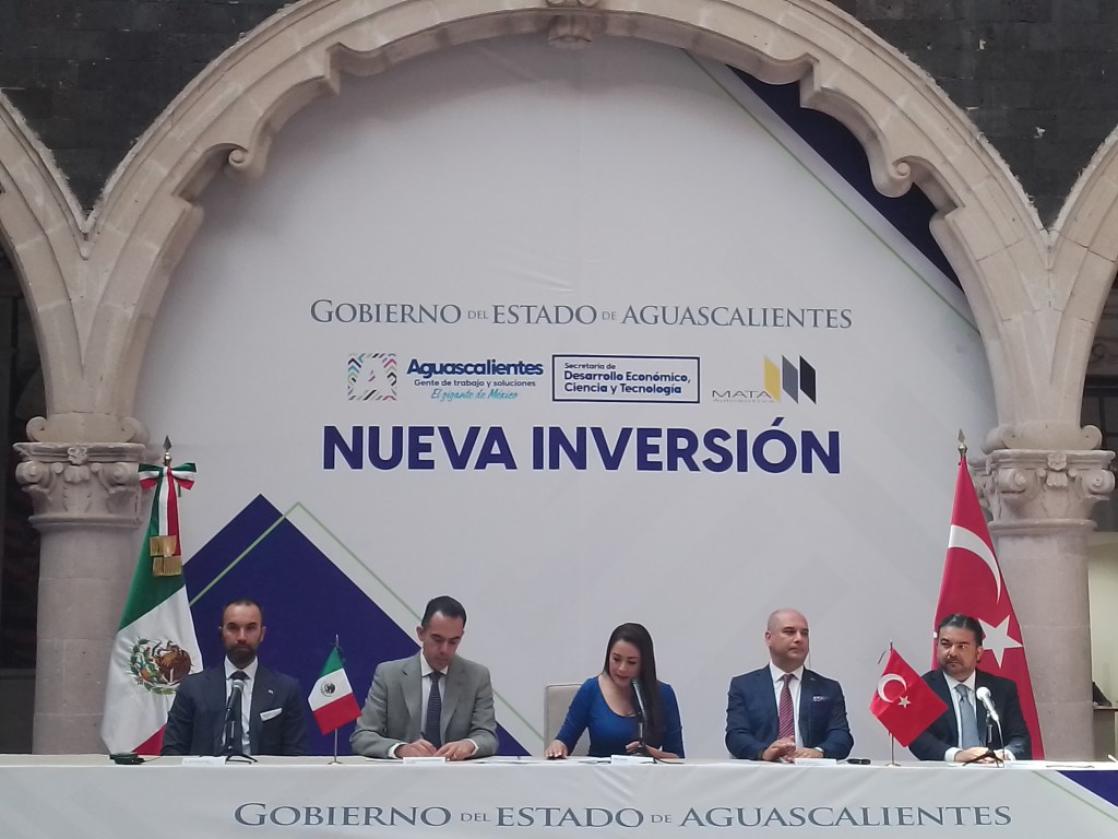 Junto con la gobernadora de Aguascalientes, Tere Jiménez, directivos de la empresa turca Mata Automotive anunciaron una inversión de más de 340 millones de pesos en el establecimiento de su primera planta en México en esta entidad, que generará 800 nuevos empleos.