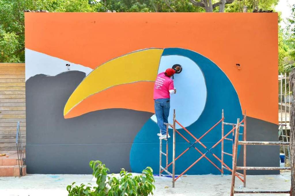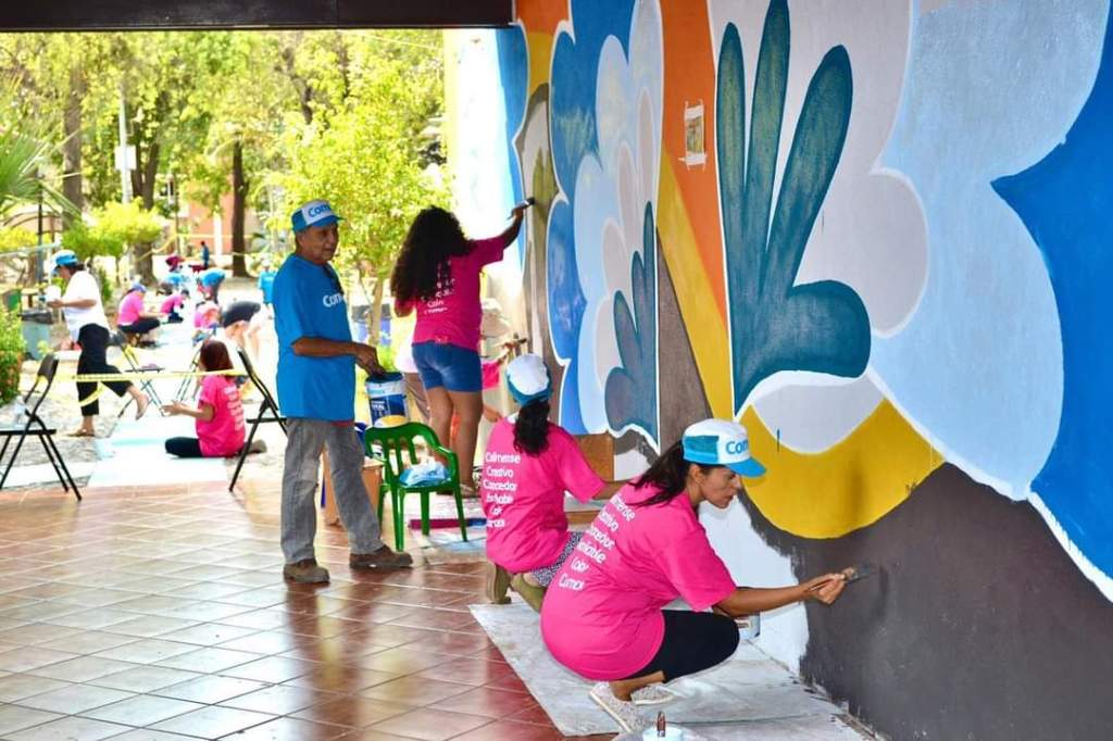 El calor no detuvo ni un sólo momento a la enorme brigada que se conformó con personal de la Subsecretaría de Cultura del Gobierno Colima, niñas, niños, madres, padres y colimenses de diferentes colonias, y el color y las figuras comenzaron a impregnarse en los muros, en los caminos, en los espacios de este bello jardín que funciona como punto de encuentro entre el pueblo de #NuestraColima con el arte, la cultura, el juego y el deporte.
