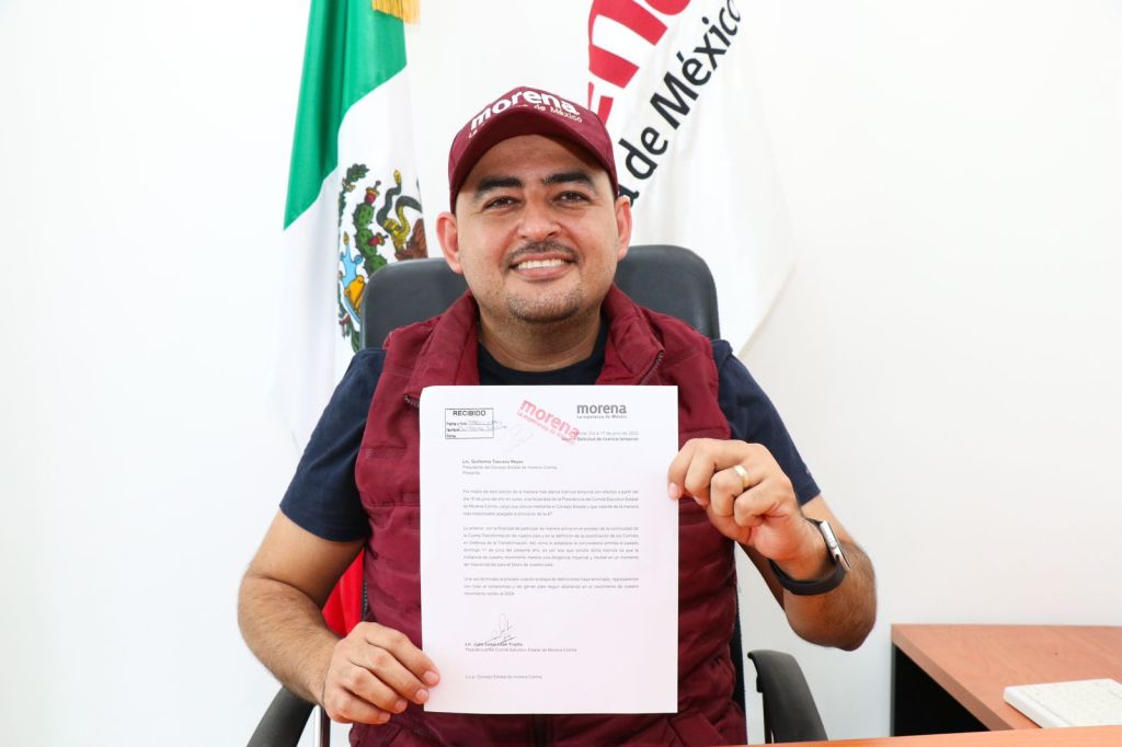 Mediante sus redes sociales, el presidente del Comité Estatal de Morena Colima, Julio León, informó que presentó licencia temporal con el propósito de encausar sus esfuerzos y anhelos, para hacer realidad el que una mujer represente los destinos de la nación.