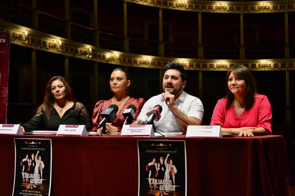La Subsecretaría de Cultura del Gobierno del Estado de Colima y la compañía de teatro Cuatro Milpas A.C. anunciaron este miércoles en conferencia de prensa la realización de dos funciones estelares de la obra “Exiliadas de la Gloria”, este viernes 23 y sábado 24 de junio a las 8:30 de la noche, en el Teatro Hidalgo de la capital colimense.