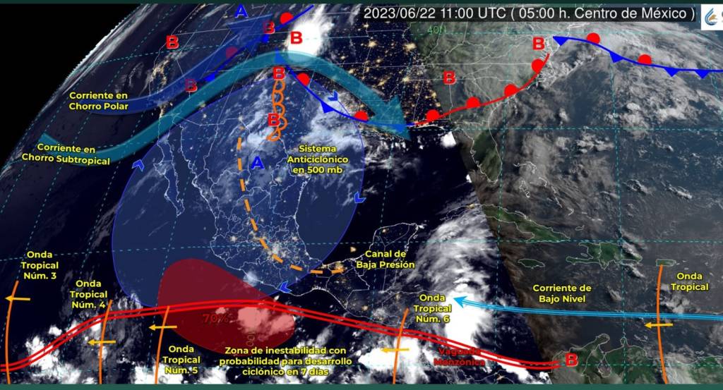 Para hoy se pronostican temperaturas superiores a 45 grados Celsius en: Sonora, Coahuila, Nuevo León, Tamaulipas, San Luis Potosí, Veracruz y Tabasco; así como de 40 a 45°C en: Colima, Jalisco, Michoacán, Baja California Sur, Chihuahua, Durango, Sinaloa, Nayarit, Morelos, Guerrero, Hidalgo, Puebla y Yucatán.