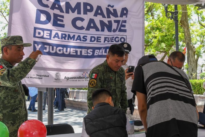 Concluyó la “Campaña de canje de armas de fuego y juguetes bélicos 2023” que impulsó la Secretaría de Seguridad Pública Municipal de Aguascalientes (SSPM) en coordinación con la Secretaría de la Defensa Nacional (SEDENA), con un saldo de 24 armas cortas y 11 pistolas de aire y gas, 385 cartuchos de diversos calibres y 25 cargadores que fueron entregados por la población, a quien se le entregó un beneficio económico.