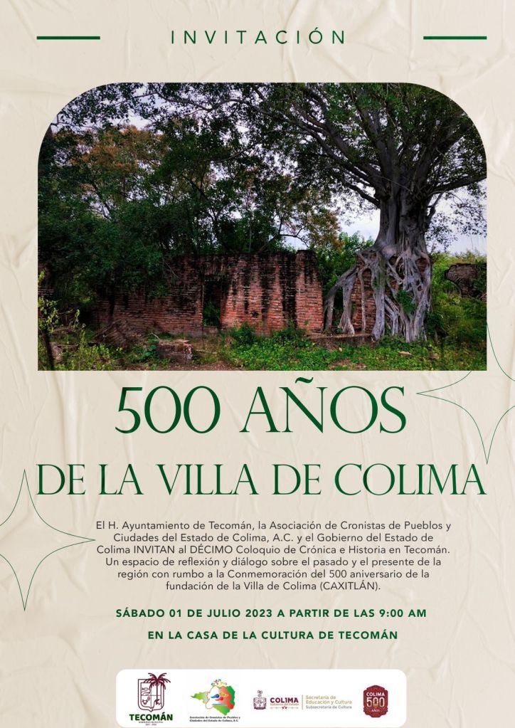 El H. Ayuntamiento de Tecomán, la Asociación de Cronistas de Pueblos y Ciudades del Estado de Colima, A.C., y el Gobierno del Estado de Colima invitan al décimo coloquio de crónica e historia, que se llevara a cabo en la Casa de la Cultura de Tecomán, el día Sábado 01 de Julio a partir de las 9:00 am.