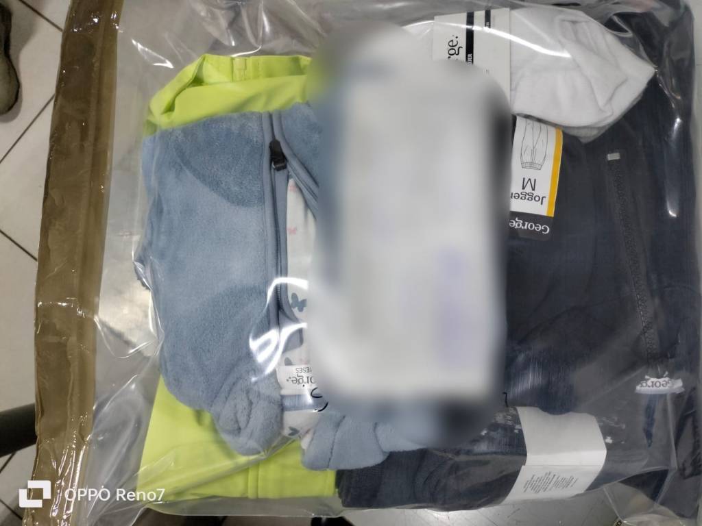 En ese momento, el responsable de protección de activos de la Tienda Departamental Walmart les informó que dicha persona sustrajo dos pants en color negro, una sudadera fluorescente, unas calcetas en color blanco y un mameluco, cuyo monto total era de 1,933 pesos, de los cuales no acreditó la propiedad por lo que requerían de su detención.