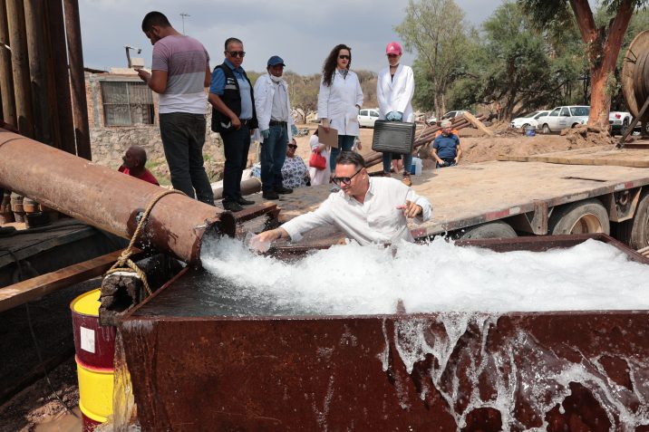 Leo Montañez, comentó que el aforo tiene la finalidad de medir los litros por segundo que se podrán extraer de agua de los pozos, así como la limpieza de los mismos, por lo que señaló que el pozo P-091A podría llegar a un bombeo que arroje la cantidad aproximada de 80 litros por segundo, mientras que el pozo P-146 un aproximado de 40 a 50 litros, para que pueda llegar el agua a los domicilios en óptimas condiciones.