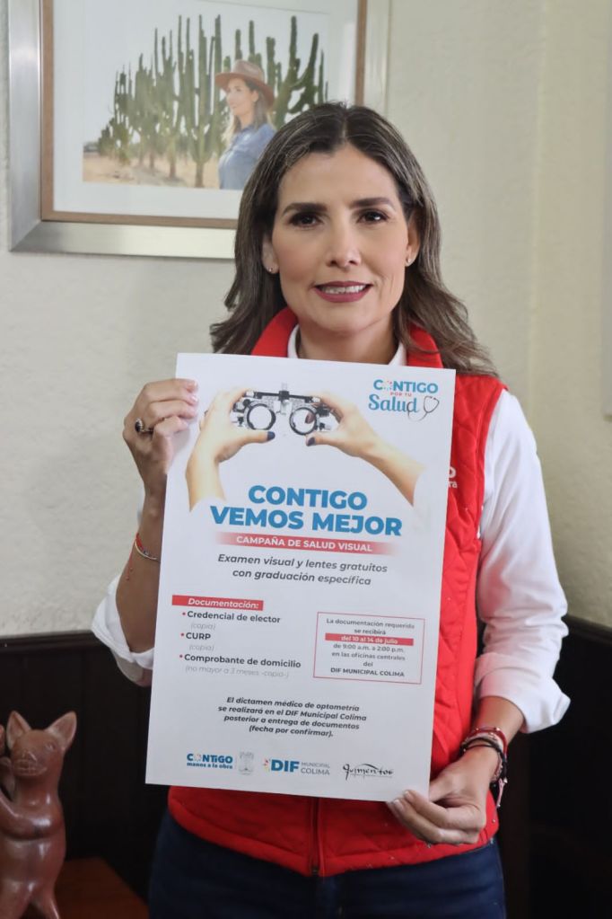 La presidenta municipal de Colima, Margarita Moreno, anunció el arranque de la campaña Contigo Vemos Mejor, cuyo objetivo es entregar lentes gratuitos, con graduación específica, para ayudar a las personas que tengan debilidad visual.