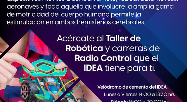 El Instituto del Deporte del Estado de Aguascalientes (IDEA) invita a toda la población a participar de forma gratuita en el Taller de Robótica y Carreras de Radio Control.