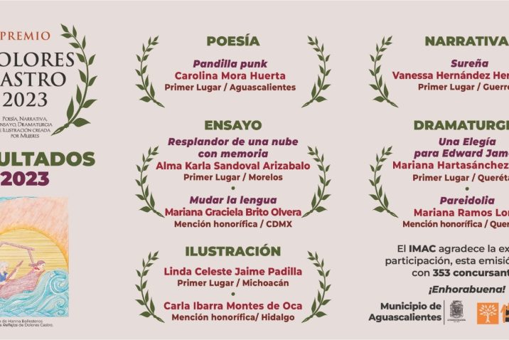 El director general del Instituto Municipal Aguascalentense para la Cultura (Imac), Octavio Alberto Ozuna, dio a conocer que se eligió a las ganadoras del Premio Dolores Castro 2023, y que esta undécima edición es la que más concursantes ha registrado con 269 libros y 84 carpetas con portafolios de ilustración con participantes de diferentes estados del país.