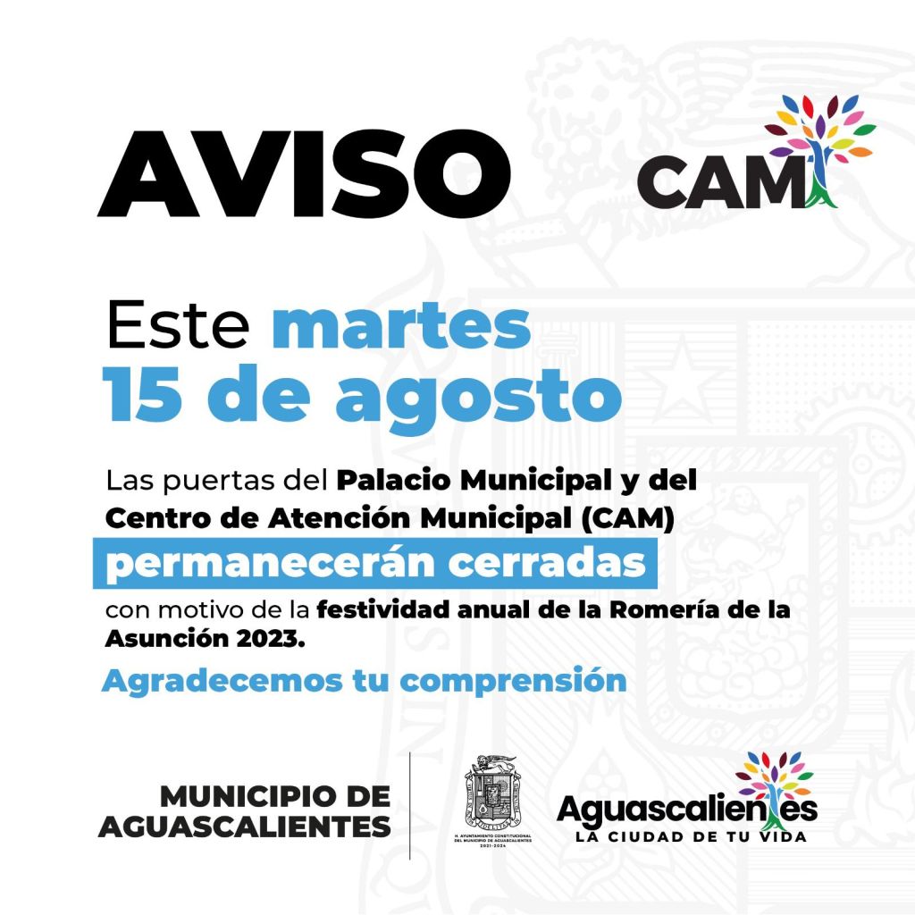 permanecerán cerradas lo anterior por motivo de la festividad anual de la Romería de la Asunción 2023.
