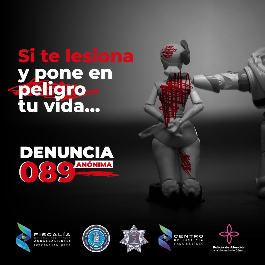 Hoy en Aguascalientes decimos NO a la violencia, ayúdanos con tu denuncia anónima al 089.
