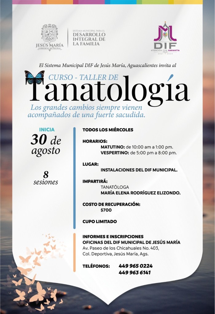 El Sistema DIF Municipal de Jesús María, invita a la ciudadanía a participar del nuevo taller de Tanatología que se llevará a cabo en las instalaciones de dicha institución.