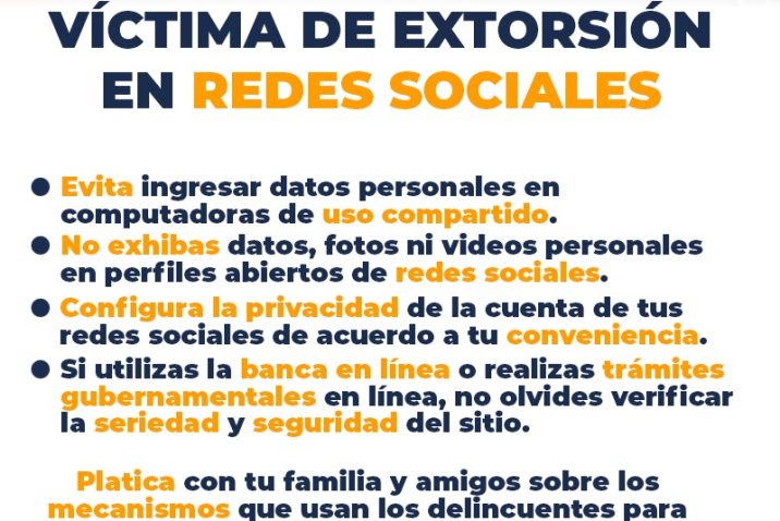 La Secretaría de Seguridad Pública Municipal de Aguascalientes (SSPM), hace un llamado a la población del municipio capital, para atender las recomendaciones de la Unidad de Inteligencia Cibernética (UIC) de la Dirección de Estado Mayor, con la finalidad de aumentar la prevención de intentos de extorsión y otros delitos como el ciberacoso y el robo de cuentas de redes sociales.