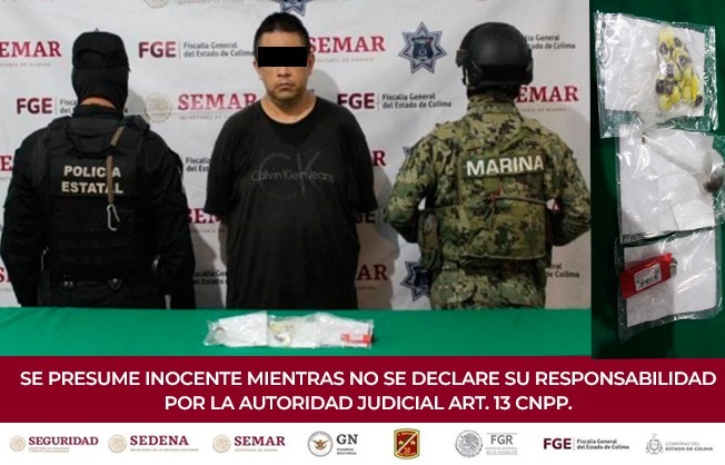 La Secretaría de Seguridad Pública (SSP) del Gobierno del Estado de Colima, dio a conocer que elementos de Policía Estatal Preventiva (PEP), en coordinación con personal de la Secretaría de Marina (Semar), aprehendieron a un individuo en posesión de varios envoltorios que contenían una sustancia con las características de la droga conocida como “ice”, en hechos registrados en el municipio de Colima.