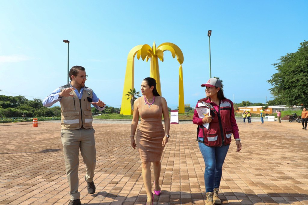 Marisol Neri León, secretaria de Infraestructura, Desarrollo Urbano y Movilidad (Seidum), explicó los trabajos de rehabilitación y de la plazoleta; ya se puede visualizar que está prácticamente terminada, con 85% de avance en toda la obra, que inicia en la Palma Amarilla o Puertas del Camino Real y termina en la glorieta de El Costeño; es decir, en la salida a Tepames.