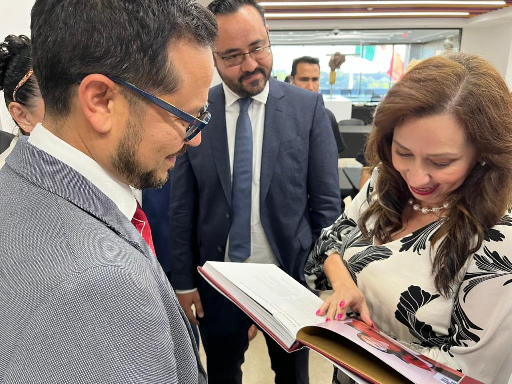 Jorge Padilla obsequió a la Cónsul el libro conmemorativo de los 500 años de la fundación de Colima, quien agradeció tan valioso testimonio editorial.