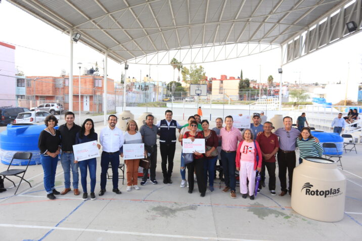En las instalaciones del Deportivo Fidel Velázquez, el presidente municipal, Leo Montañez llevó a cabo la entrega simbólica de 58 insumos para viviendas, como tinacos, cisternas, calentadores y otros, que elevan la calidad de vida de los habitantes del municipio.
