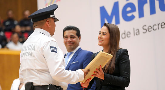 La gobernadora Tere Jiménez y el presidente municipal de Aguascalientes, Leo Montañez, entregaron medallas y reconocimientos al mérito policial a efectivos de la Secretaría de Seguridad Pública del Municipio (SSPM) de la capital.