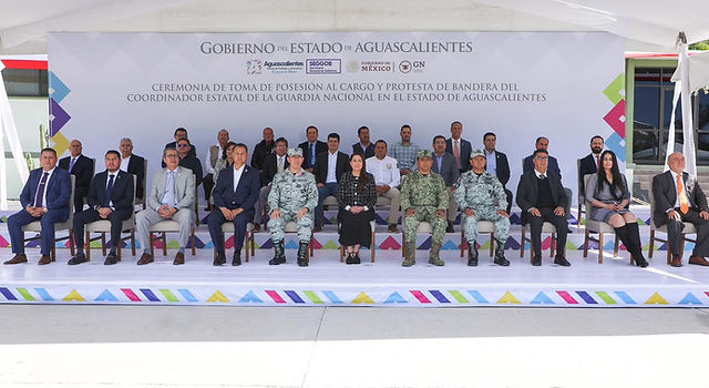Convencida de que el trabajo coordinado entre todos los niveles de gobierno seguirá posicionando a Aguascalientes como uno de los estados más seguros del país, la gobernadora Tere Jiménez asistió a la toma de posesión al cargo y protesta de Bandera del comisario Leonel Alcaraz Alarcón, como nuevo coordinador estatal de la Guardia Nacional en la entidad.