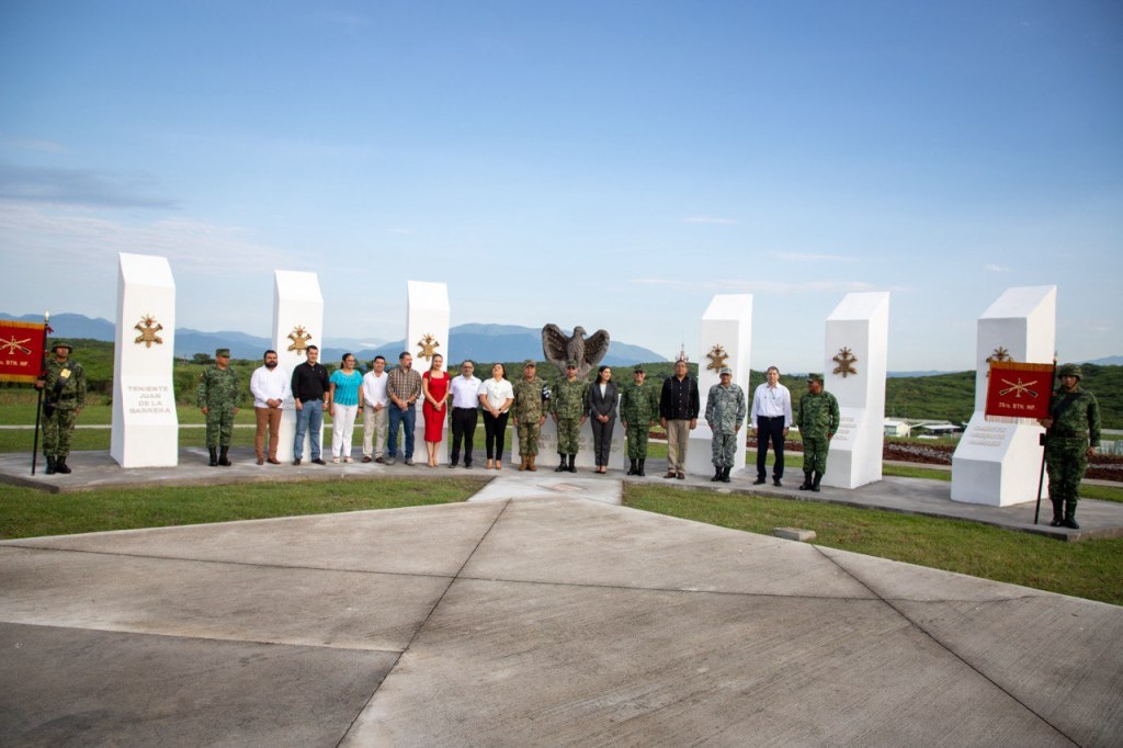 El general Adolfo Héctor Tonatiuh Velazco Bernal, titular de la Vigésima Zona Militar, dijo que monumentos como éste se colocaron en todos los campos militares de México.