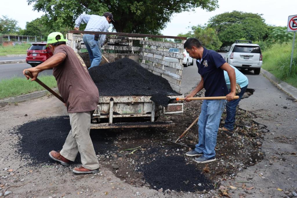 Con siete brigadas en todo el municipio, el Ayuntamiento de Villa de Álvarez trabaja desde el pasado martes en la reparación de los baches y socavones que generó la lluvia provocada por el huracán “Lidia”, informó la Presidenta Municipal Tey Gutiérrez Andrade.