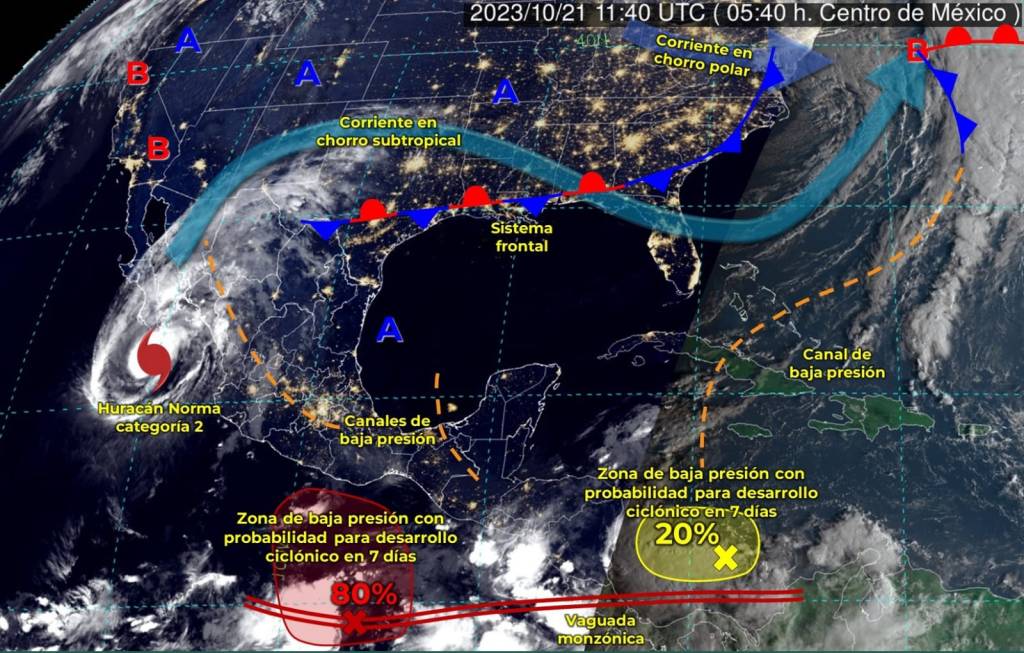 Respecto a las temperaturas máximas para hoy sábado, en el estado de *Colima* se podrían alcanzar registros de 30 a 35 grados Celsius, al igual que en Jalisco, Michoacán, Guerrero, Nayarit, Oaxaca, Chiapas Veracruz y Tabasco.