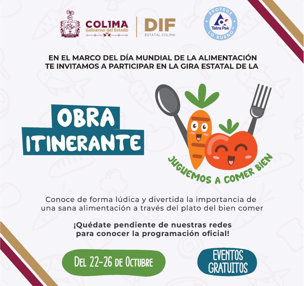 Rosa María Bayardo Cabrera, directora general del DIF Estatal Colima, dio a conocer que en coordinación con la empresa TetraPak, se está llevando a cabo la gira estatal de la obra de teatro itinerante ‘Juguemos a comer bien’ con el objetivo de crear conciencia acerca de la importancia de llevar una sana alimentación, la actividad física y el reciclaje en la infancia.