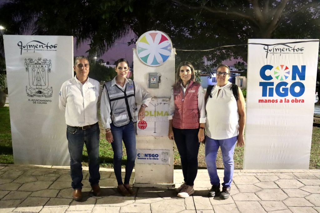 La presidenta municipal de Colima, Margarita Moreno, hizo entrega de las acciones de renovación de las luminarias del andador a Rancho de Vila, con el que se mejoran las condiciones de este paseo que es visitado por las familias colimenses que, ahora, cuentan con un espacio más iluminado.