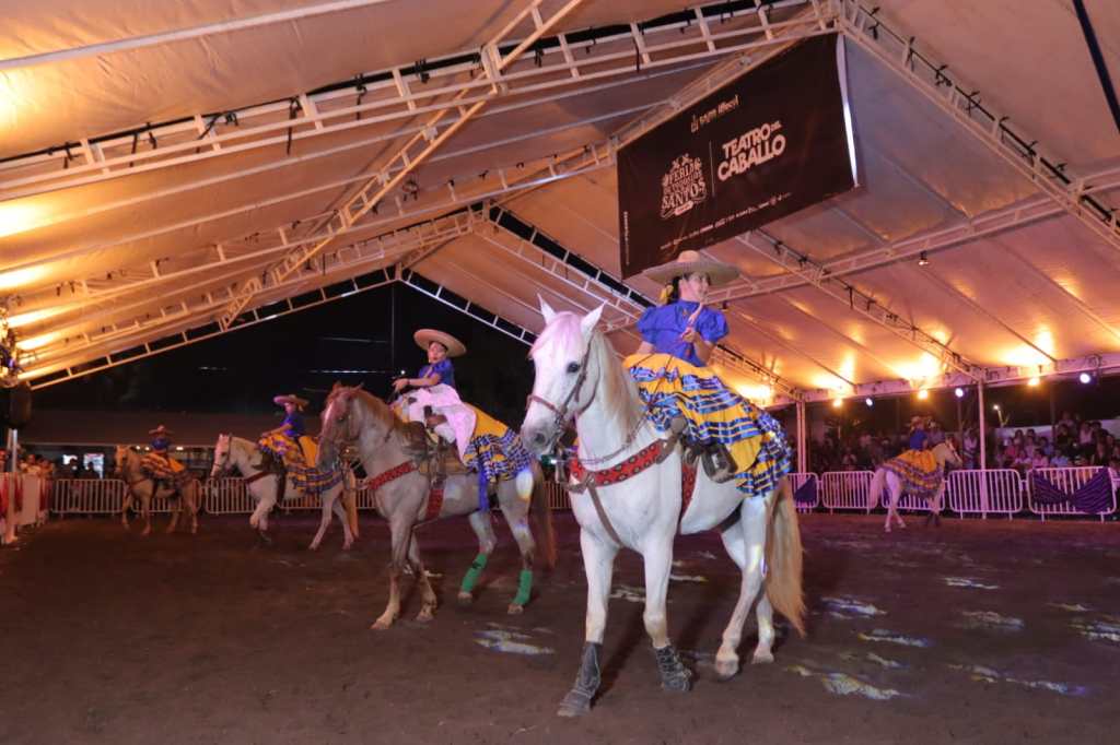 Con un Teatro del Caballo a tope, en la Feria de Todos los Santos 2023 se ofreció la noche de este jueves un digno espectáculo ecuestre, donde más de mil espectadores apreciaron con la mexicanidad a flor de piel la fusión del Ballet Folklórico y caballos en sentimientos que convergieron para gritar ‘Viva México’.