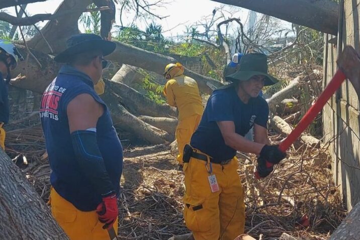 Brigadistas de Aguascalientes continúan con las labores de ayuda humanitaria en la zona devastada por el huracán Otis, en la ciudad de Acapulco de Juárez, en el estado de Guerrero.