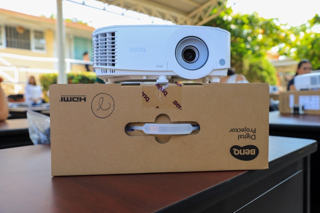 En gira por Manzanillo este miércoles, la gobernadora de Colima, Indira Vizcaíno Silva, entregó equipos para docentes de la zona rural del municipio porteño, dentro del programa _Mobiliario Digno para Maestros_, en la primaria Vicente B. Ibarra en El Naranjo, donde otorgó 182 escritorios, 182 sillas y setenta videoproyectores, con inversión de un millón 722 mil pesos; «esto implica cuánto valoramos el trabajo de ustedes todos los días, pues son las y los principales aliados de la transformación en nuestro estado», les indicó.