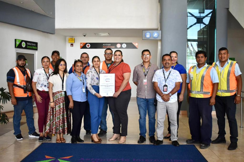 Por parte del aeropuerto, recibieron el sello Judith Cruz Cruz, gerente de administración, y Alma García, encargada de experiencia del usuario.
