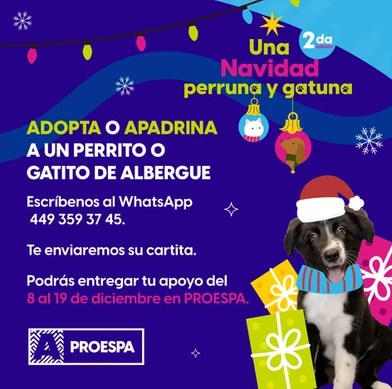 Quienes deseen apoyar esta noble causa, tienen hasta el 7 de diciembre para solicitar la Carta de Deseos de alguno de los perritos y gatitos que se encuentran en albergues locales, al WhatsApp 449 359 37 45.