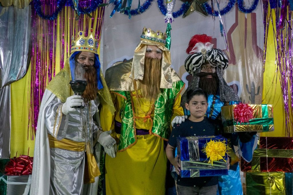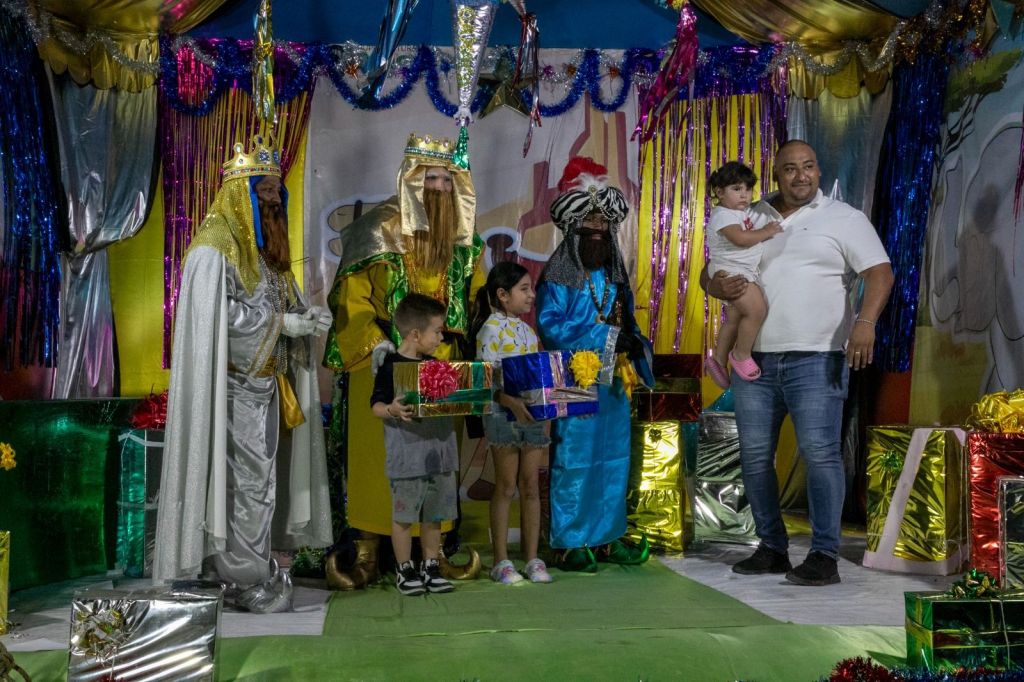 Sin ningún costo y con la finalidad de que las personas puedan conservar un bonito recuerdo de esta celebración en el Centro Histórico manzanillense, niñas, niños y adultos pudieron tomarse fotografías con los Reyes Magos, en un set bellamente adornado y ambiente festivo.