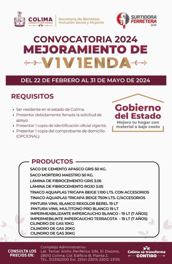 El programa está dirigido a residentes mayores de edad del estado de Colima, que buscan mejorar sus viviendas mediante la adquisición de materiales para construcción a precios altamente competitivos.