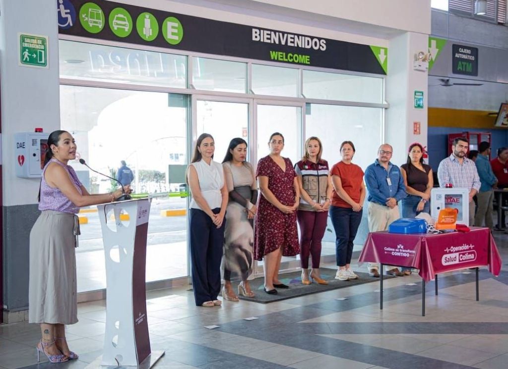La tarde de este martes, la gobernadora de Colima, Indira Vizcaíno Silva, encabezó en la Central Camionera de Manzanillo la instalación de uno de los cerca de cien desfibriladores Automáticos Externos (DAE), que se colocarán en toda la entidad: en espacios públicos, edificios gubernamentales, unidades deportivas e incluso con algunos dispositivos portátiles que puedan llevarse a eventos masivos, pues «es crucial que tomemos medidas concretas para proteger a la población, y la instalación de estos dispositivos abona a que podamos cumplir ese objetivo, pues podrían salvar cientos de vidas», expresó la mandataria.