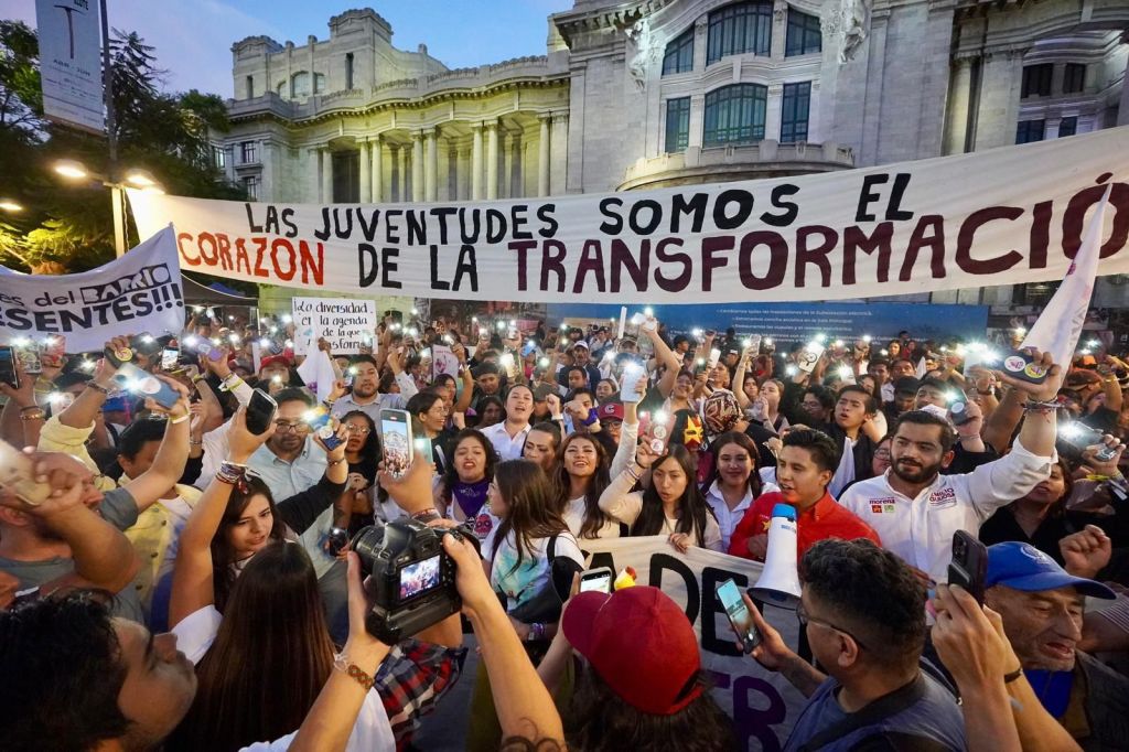 La caminata partió desde el Colegio de San Ildefonso hacia el Palacio de Bellas Artes. Durante el recorrido las y los jóvenes expresaron su respaldo a la candidatura de la Dra. Claudia Sheinbaum y lanzaron consignas como: *“la próxima presidenta será mujer, será mujer”.*