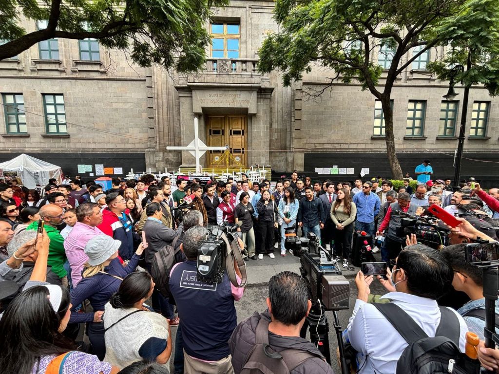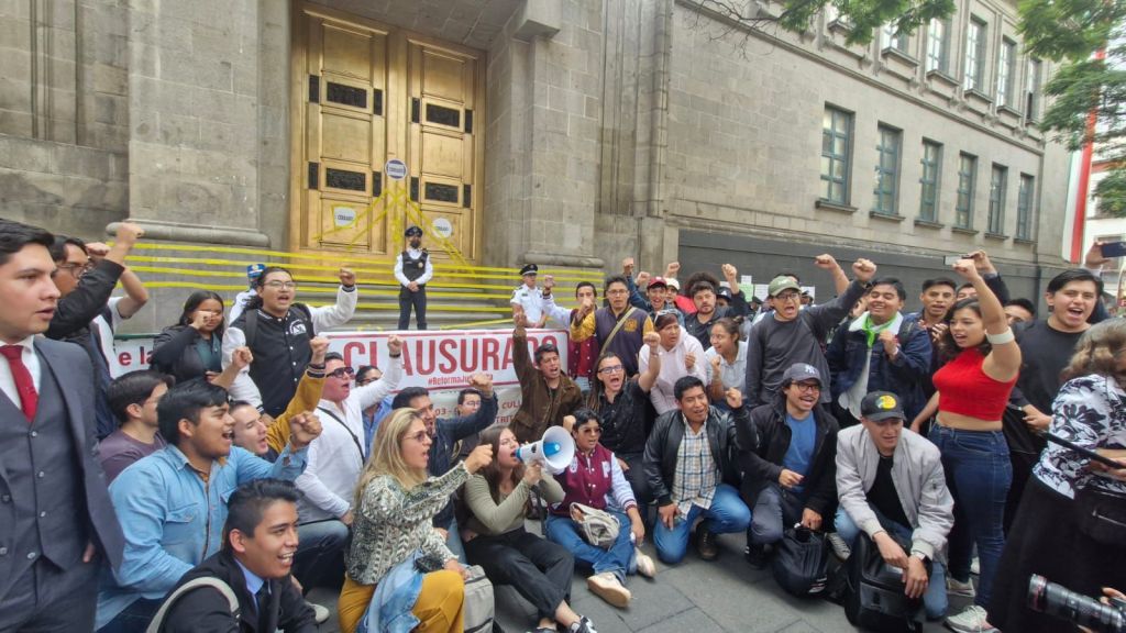 — Hoy, *más de 100 jóvenes estudiantes* realizaron una *clausura simbólica* de la *Suprema Corte de Justicia de la Nación*, exigiendo una *reforma al Poder Judicial* y *denunciando el paro ilegal de labores por parte de sus ministros*.