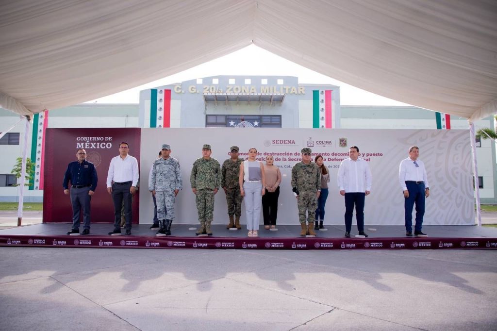 La mañana de este miércoles se llevó a cabo en las instalaciones de la Vigésima Zona Militar, en el municipio de Colima, la ceremonia de destrucción de armamento decomisado y puesto a disposición de la Secretaría de la Defensa Nacional (Sedena), a donde asistió la gobernadora Indira Vizcaíno Silva y diversas autoridades.
