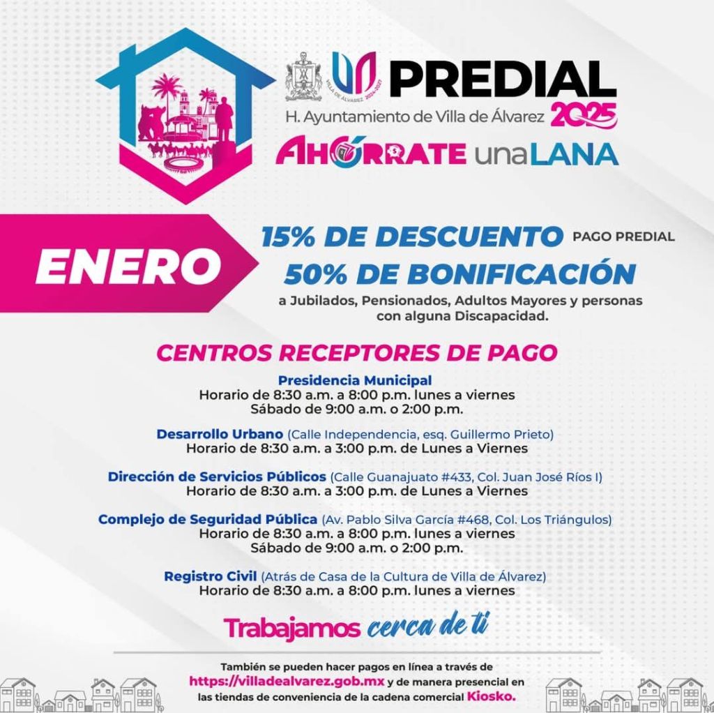 #LaVillaeS Cercana. Estos son los puntos ⤵️ donde podrás encontrar una caja recaudadora para el pago de tu predial, en #VillaDeÁlvarez.