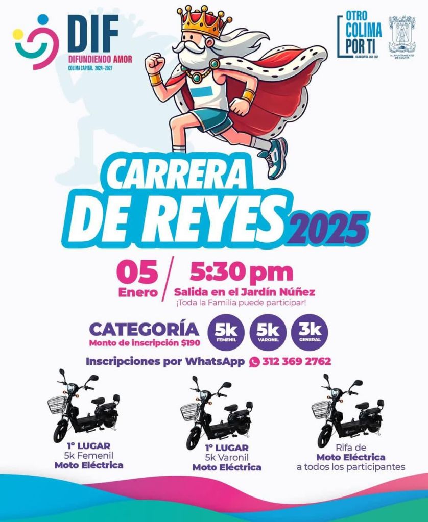 El presidente municipal de Colima, Riult Rivera Gutiérrez, está invitando a la ciudadanía en general a participar en la carrera atlética de Reyes, que viene organizando el DIF Municipal Colima, con motivo del Día de Reyes.