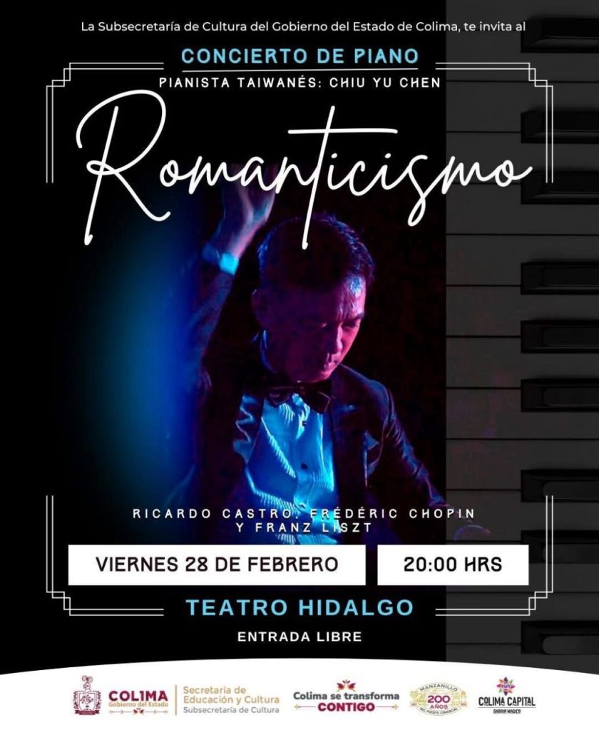 La Subsecretaría de Cultura del Gobierno del Estado de Colima invita a la población colimense a la próxima función gratuita en el Teatro Hidalgo, para continuar con la temporada 2025 de este emblemático recinto, donde el público podrá disfrutar de un concierto internacional, presentado por el pianista taiwanés Chiu Yu Chen.