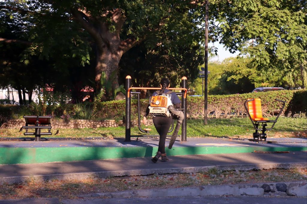 Como parte de los trabajos que se realizaron este día en los espacios recreativos y jardines de las colonias antes señaladas, se realizó también la poda de árboles y arbustos y en la limpieza de los mismos a fin de contar con espacios más limpios y atacar la fauna nociva, para evitar la proliferación de enfermedades como el dengue, entre otras.