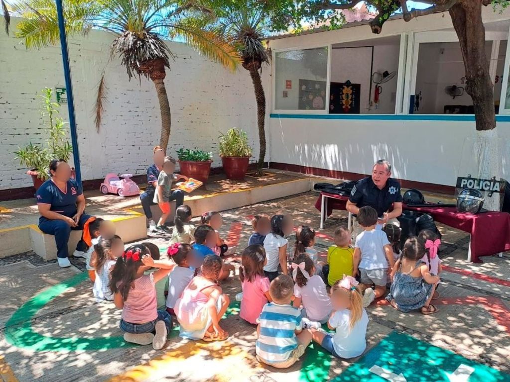 La Secretaría de Seguridad Pública (SSP) del Gobierno del Estado de Colima, a través de la Jefatura de Prevención Psicosocial y Situacional de la Dirección General de Vinculación Social y Prevención del Delito, llevó a cabo una función policial de acercamiento amigable con niñas y niños de guardería y preescolar del Centro Infantil Gandhi, en el municipio de Colima.