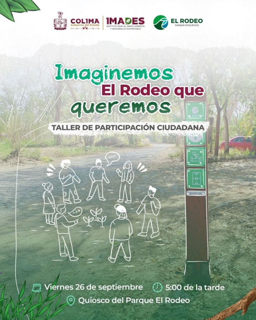 El Gobierno del Estado de Colima, a través del Instituto para el Medio Ambiente y Desarrollo Sustentable (Imades), convoca a toda la población al taller de participación ciudadana ‘Imaginemos El Rodeo que queremos’, que se llevará a cabo este viernes 26 de septiembre a las 17:00 horas en el quiosco de ese parque ecológico que se ubica en las cercanías de la comunidad de La Estancia, en el municipio capitalino.
