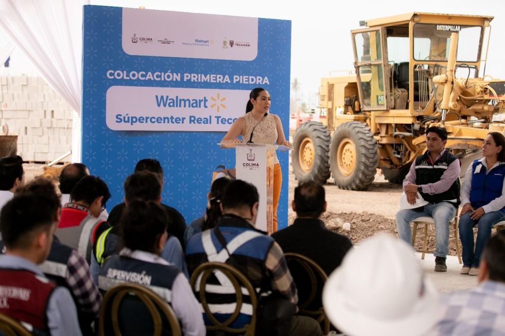 La mañana de este lunes, la gobernadora de Colima, Indira Vizcaíno Silva, acompañó la colocación de la primera piedra de la sucursal de la cadena de tiendas de autoservicios Walmart que se estará construyendo en Tecomán; la mandataria estatal destacó que se trata de una inversión de más de 240 millones de pesos, que generará alrededor de 120 empleos directos y muchos más indirectos.