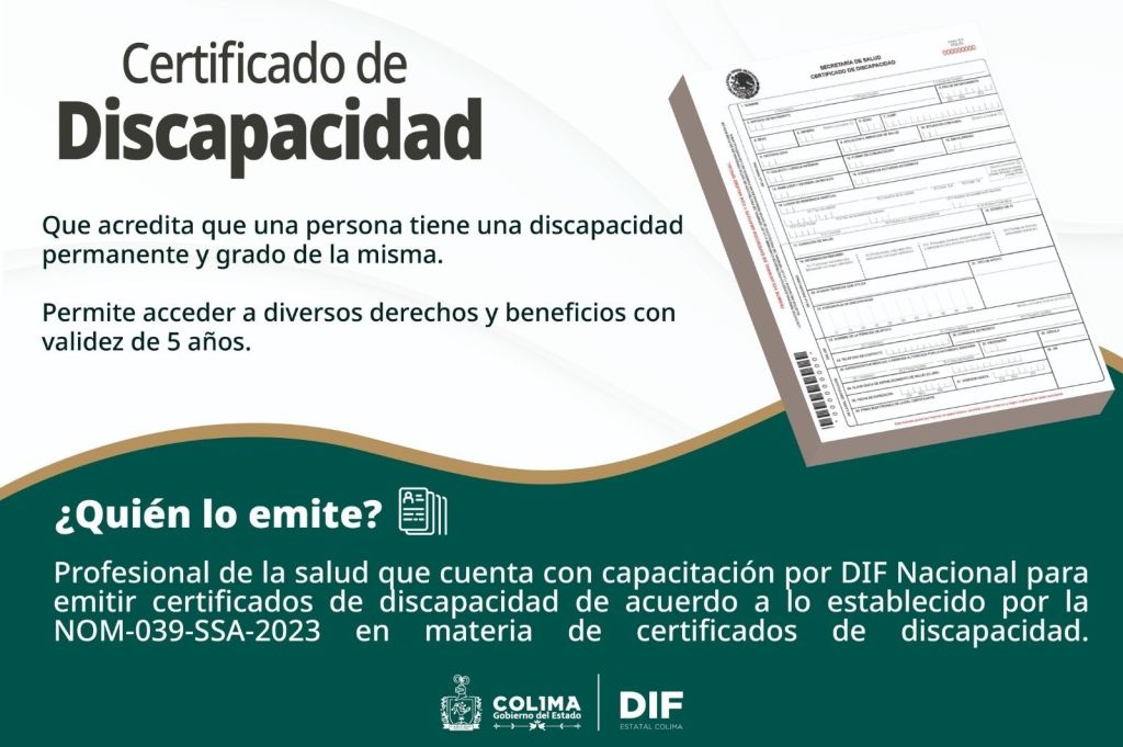 Los certificados de discapacidad tienen vigencia de cinco años y permiten acreditar de manera oficial la condición de discapacidad permanente o el grado de la misma. Es un documento indispensable para acceder a diversos apoyos, programas y beneficios. Existen distintos tipos de discapacidad, entre ellas física o motora, sensorial, intelectual, psicosocial (mental) y múltiple.